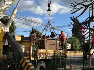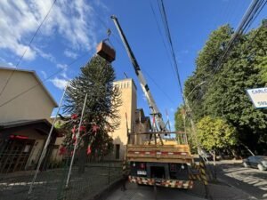 Hoy jueves 05 de diciembre de 2024 a las 19:00 horas, se colocaron las luces del árbol navideño de la parroquia de Bulnes. Agradecemos a don Juan Carlos Villagra, quien en nombre de su esposa María Elena (Q.E.P.D.) se encarga de proveer las luces y demás adornos del árbol. Igualmente agradecemos a don Raúl Medina, quien con su camión y algunos de sus trabajadores, colocaron las mangueras luminosas en el árbol; que Dios les bendiga por su colaboración.