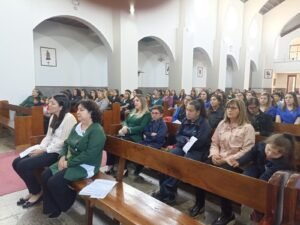 Hoy 24 de noviembre a las 11:00 horas, las Educadoras de Párvulo de Bulnes, junto a sus asistentes culminaron con una liturgia de acción de gracias la semana del Párvulo. También trajeron ofrendas como signo de solidaridad con nuestros hermanos más necesitados. En la liturgia les acompañó el diácono Raúl Aqueveque.