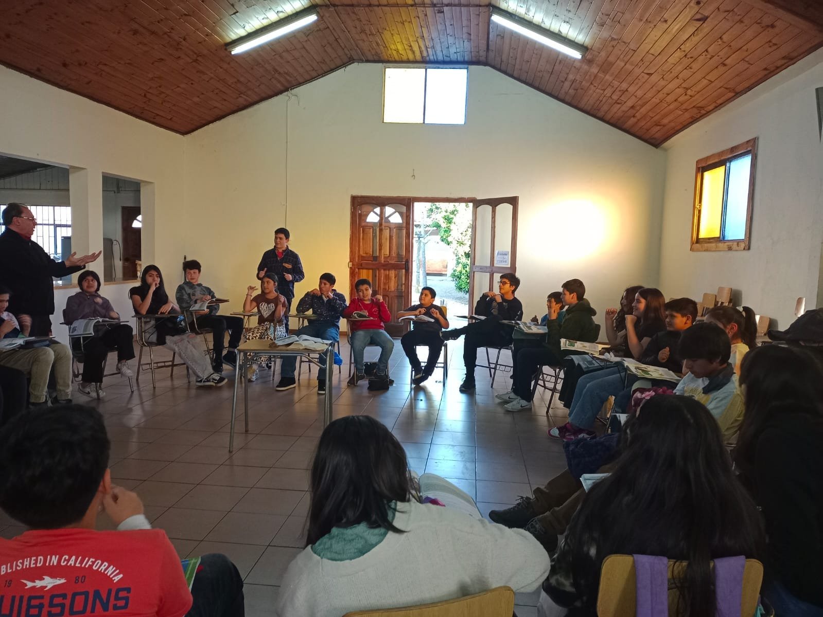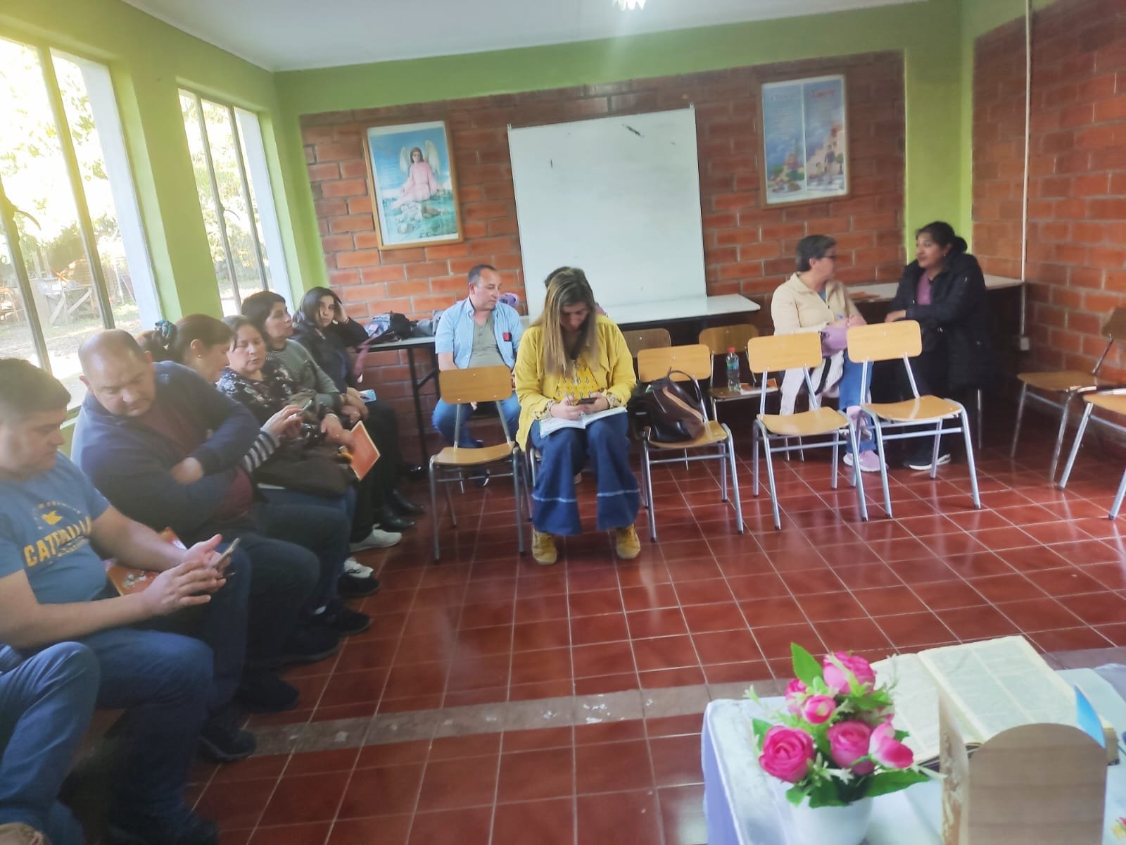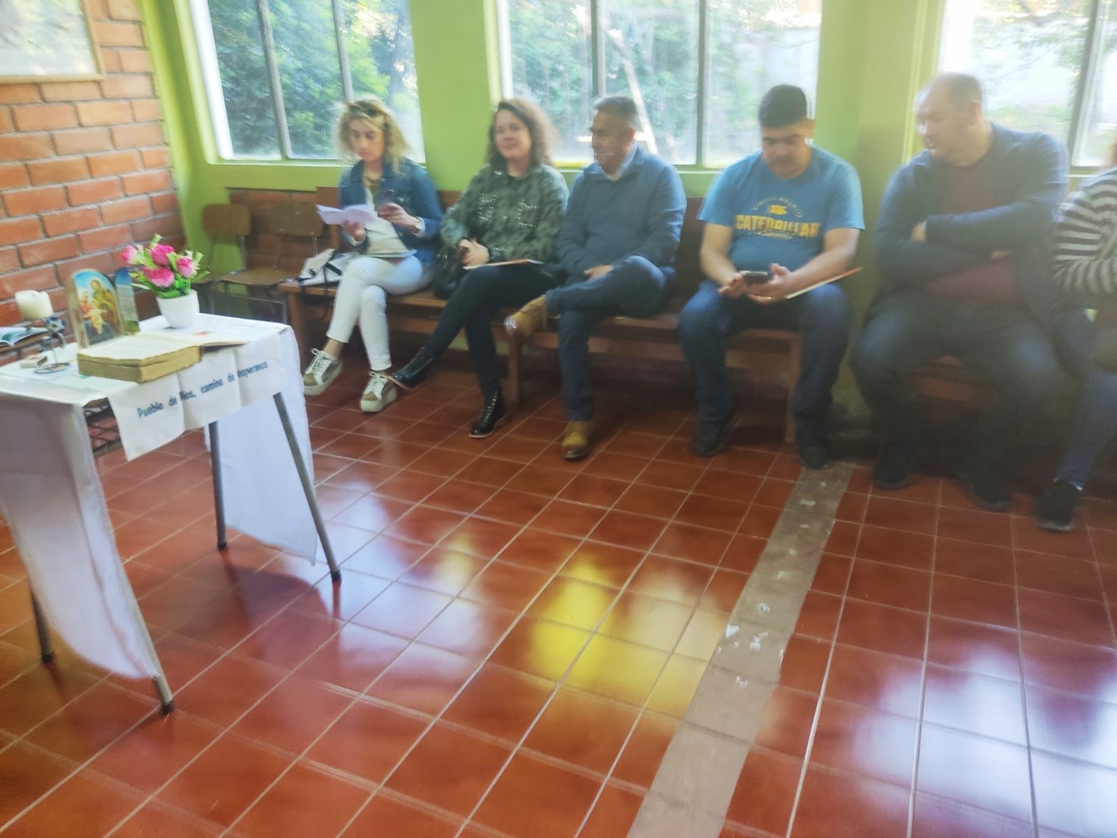 Hoy viernes 13 de octubre, desde las 18:30 horas, se reunieron los padres y sus hijos para realizar el encuentro de catequesis. Los padres se reunieron con el matrimonio Briones Sandoval y los niños con la CN., Carmen Gloria Gaete. El padre Luis Rocha visitó, a los padres y a los niños y les enseñó una hermosa alabanza.