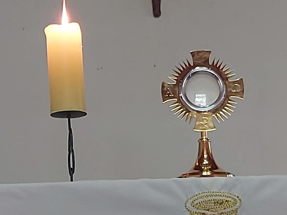 Hoy miércoles 18 de octubre a las 18,00 horas, el padre Luis Rocha celebró misa en la capilla San Lucas. Antes de la misa hubo un momento de adoración al Santísimo Sacramento del Altar. Se bendijeron a las familias y se terminó con un ágape fraterno