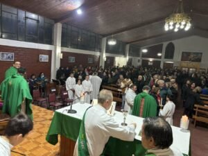 Hoy jueves 20 de junio de 2024, a las 17 horas, se realizó en la parroquia de San Ignacio, la misa de despedida como de Decanato Sur de la diócesis de Chillán, del obispo Sergio Pérez de Arce. Después de la misa, hubo un compartir fraterno.