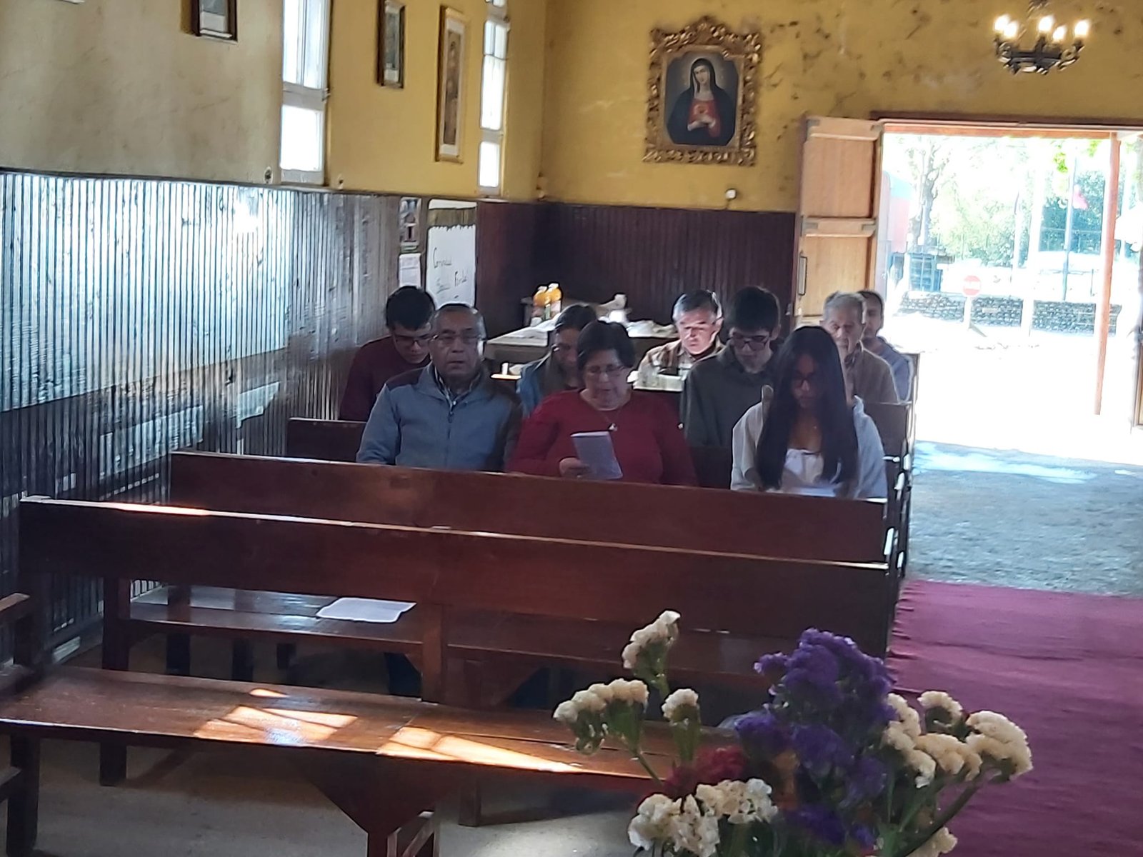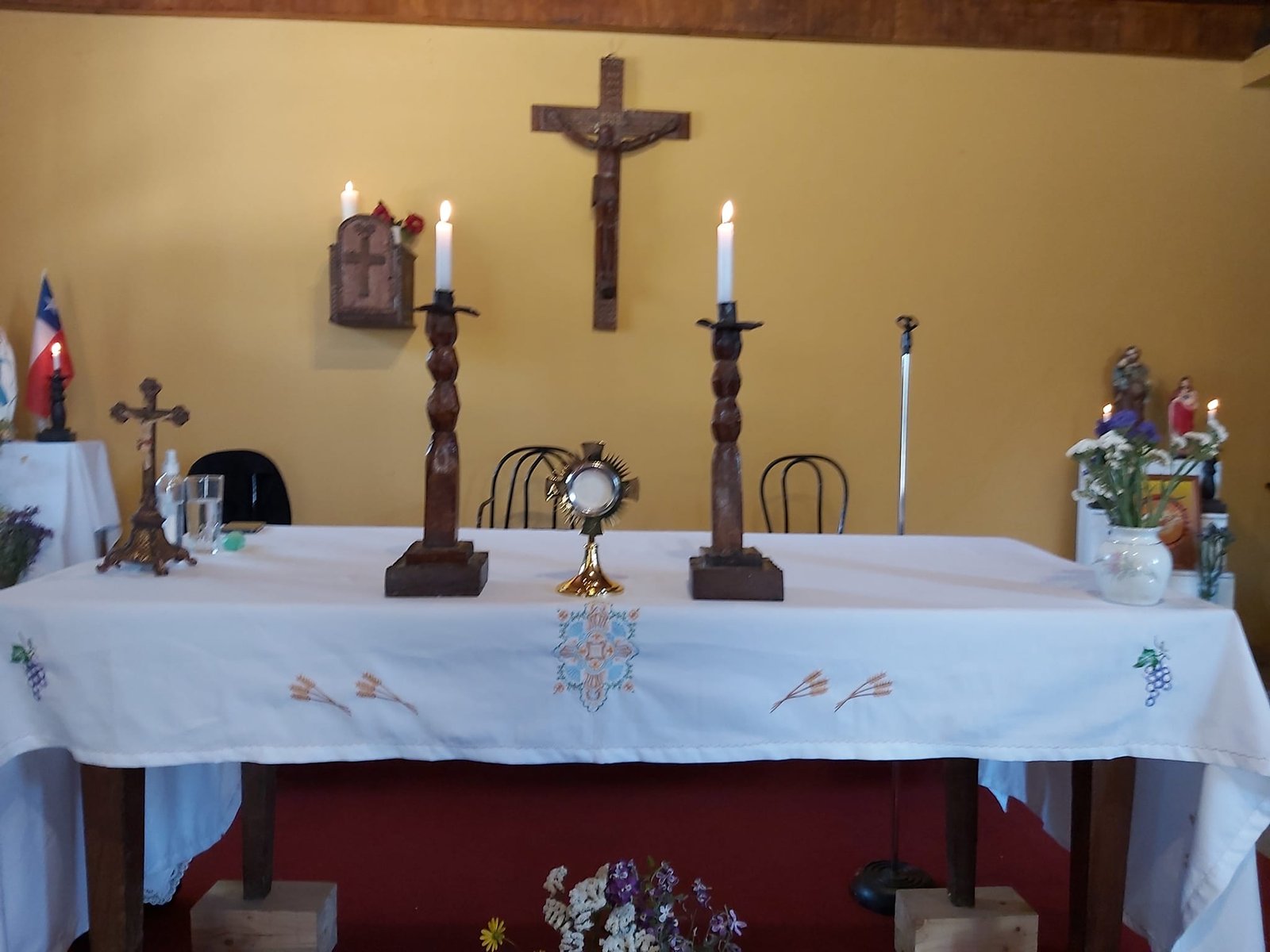 Hoy domingo 08 de octubre a las 16:00 horas el padre Luis Rocha celebró misa en la capilla Sagrada Familia, del sector Los Tilos. Antes de la misa hubo un momento de adoración al Santísimo Sacramento.