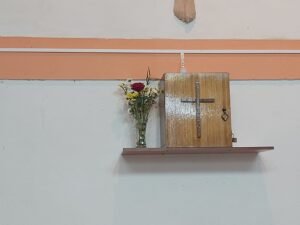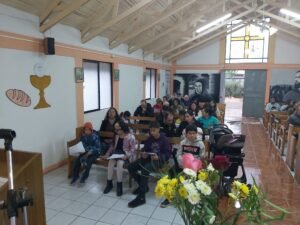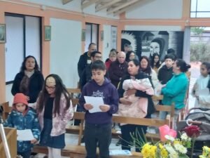 Hoy viernes 27 de octubre a las 19,00 horas el padre Luis Rocha celebró misa en la capilla San Gabriel. Se bendijo a las familias y a los niños de catequesis de primera comunión, se les hizo entrega de un pergamino con los 10 mandamientos.