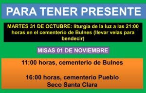 La parroquia de Bulnes informa sobre las actividades, que habrá en el contexto de todos los santo.