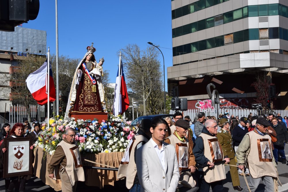 La procesión avanzó por las calles de la ciudad hasta llegar al templo Catedral, donde el Arzobispo de Concepción...