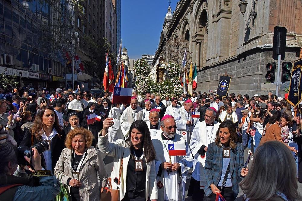 La procesión avanzó por las calles de la ciudad hasta llegar al templo Catedral, donde el Arzobispo de Concepción...