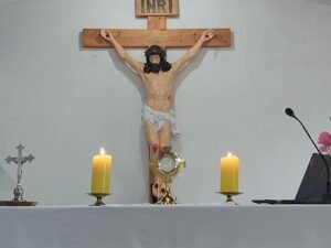 Hoy domingo 05 de noviembre a las 09,30 horas, el padre Luis Rocha celebró misa en Santa Clara. Antes de la misa hubo un momento de adoración al Santísimo Sacramento del Altar. También participaron en la misa, los padres y niños de primera comunión y los jóvenes que están preparando para la confirmación.